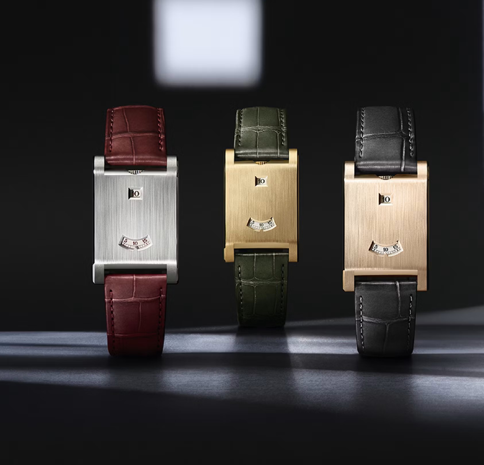 Það þýðir að í stað þess að sjá vísa ganga hægt og rólega, þá stekkur klukkustundadiskurinn áfram um eina klukkustund. Úrin koma einungis í eðalmálmum, þ.e.a.s. mismunandi gulli og platínu.