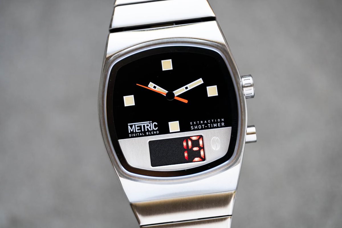 Ef það er eitthvað sem ég elska þá eru það töfrabaunir – og þá er ég að sjálfsögðu að tala um kaffi. Brew hefur alltaf haft tengingu við kaffi og er nýja hybrid „anadigi“ úrið þeirra ábyggilega besta dæmið. Tölvuhelmingur úrsins telur niður og tekur tímann til að gera hinn fullkomna espressó bolla. Ég er alltaf hrifin af því þegar merki gera eitthvað skemmtilegt með úrin sín og þetta fellur 100% undir það.