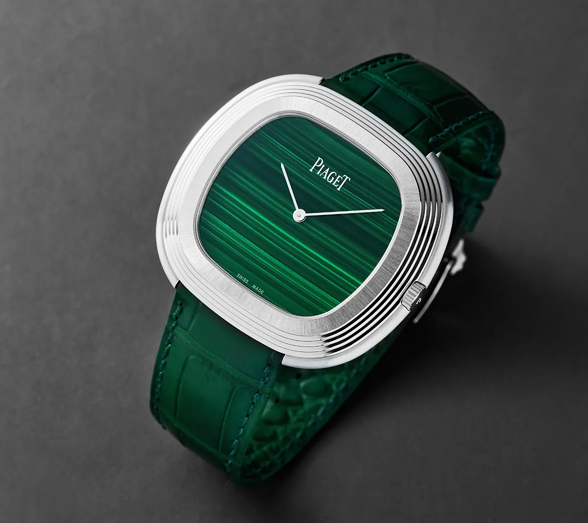 Komum að þeim sem byrjuðu steinaskífu-æðið, Piaget, og beint í Andy Warhol-línuna til að sjá bestu útfærslu af malakít á markaðinum í dag. Hægt er að fá hana í bæði hvítagulli og rósagulli og get ég eiginlega ekki valið á milli. Til að auka fjölbreytni sýni ég hvítagulls útgáfuna. Fyrir malakít hefði ég getað valið Dennison, en ákvað að spara þá fyrir næstu tegund.