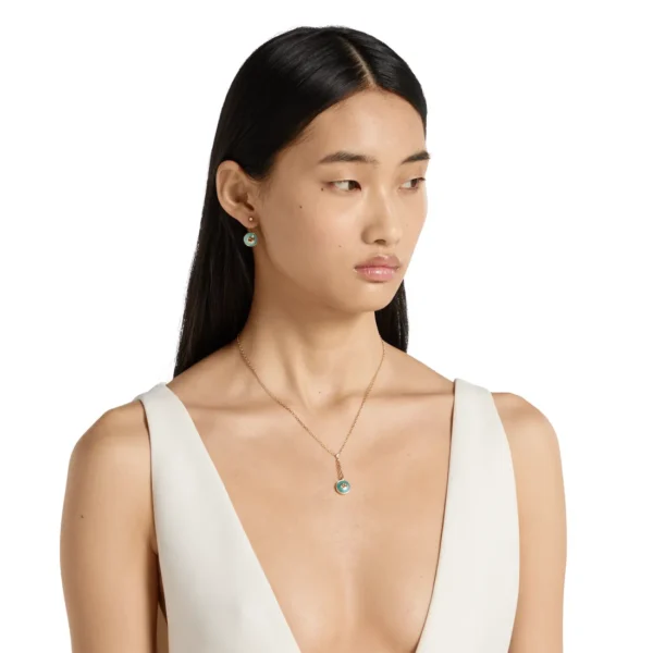 Efni keðju: 18kt gullLengd keðju: 45 – hægt að stytta í 42cmEfni mens: 18kt gull – amazonite | demantur – brilliant slípaður – 0,028ct