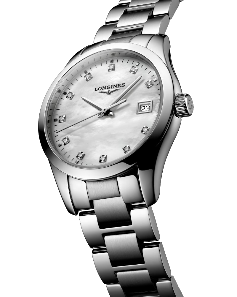 Conquest línan fangar einna best það sem Longines stendur fyrir, sport og elegans. Hér í sparilegri búning.